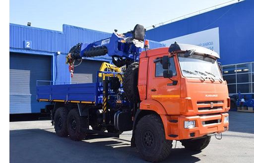 - Мощная краново-манипуляторная установка. КМУ способна поднимать предметы весом до 6,6 тонн, а 19-метровый вылет стрелы дает возможность загружать и выгружать грузы на внушительном расстоянии или высоте.